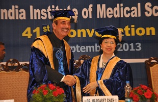 “Health is a nation-building strategy,” said Dr Margaret Chan, Director-General of the World Health Organization, while delivering the convocation address at the 41st Annual Convocation of the All India Institute of Medical Sciences (AIIMS) in New Delhi on 12 September 2013.
