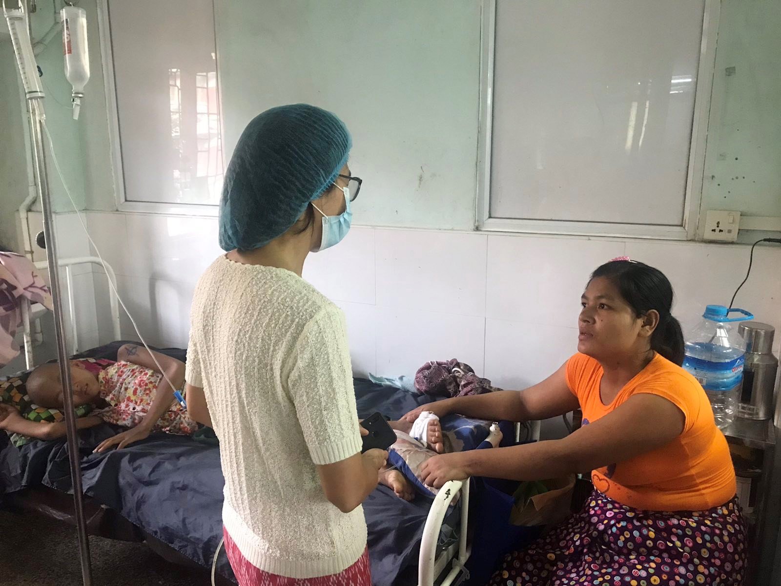 The caregiver (elder sister) telling about the health condition of the girl (patient), Rakhine State