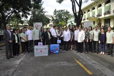 Earlier this week WHO presented the Philippine Department of Health with equipment and supplies that will contribute to the nationwide effort to protect children against measles, rubella and polio. All three diseases can cause suffering and death but are preventable if children are correctly vaccinated. During the whole month of September 2014 there will be a nationwide mass immunization activity against measles, rubella and polio. The aim of this campaign is to bring measles in the country down to very low levels and move towards measles elimination throughout the Philippines, reduce rubella rates and support efforts to keep the Philippines polio-free.