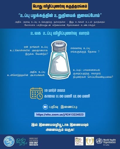With strong evidence that too much salt is not good and affects a person’s health adversely causing serious illness, WHO Sri Lanka collaborated with the Sri Lanka Medical Nutrition Association and the Directorate of Non-communicable Diseases of the Ministry of Health to give practical tips on how to make a delicious dishes without ‘shaking’ in a lot of salt.
